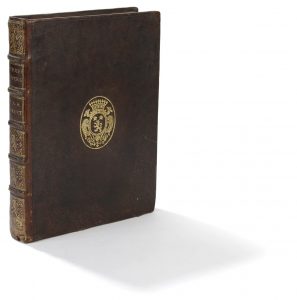 pp., (3 ff.). Veau brun, armes dorées au centre des plats, dos à nerfs orné de pièces d’armes, tranches jaspées (reliure de l’époque). Édition originale de cet ouvrage que Bossuet composa vers 1677 pour l’instruction du grand Dauphin, fils de Louis XIV. L’auteur présente ce Discours sur l’Histoire universelle comme une suite de manifestations de la “divine providence”, sa formule favorite. L’ouvrage embrasse la période allant de la Création à Charlemagne. Il se divise en trois parties : “Une première partie, intitulée les Époques et divisée en douze chapitres, est un résumé chronologique et synchronique des principaux événements ; dans une deuxième, intitulée la Suite de la religion, Bossuet expose comment, depuis Moïse, la religion chrétienne est préparée, et comment tout, dans l’ancienne loi comme dans la nouvelle, aboutit par une suite ininterrompue au triomphe de l’Église ; dans la troisième partie, les Empires, Bossuet étudie l’action de la Providence sur les grands empires de l’antiquité, et comment, absorbés l’un par l’autre, ces empires forment sous le joug des Romains, l’unité nécessaire à la diffusion de l’Évangile” (Charles-Marc Des Granges, Les Grands écrivains français des origines à nos jours, Librairie Hatier, 1900). Une suite à ce discours était annoncée, devant couvrir la période allant de Charlemagne jusqu’au XVIIe siècle ; elle ne fut jamais rédigée. L’édition est illustrée de la marque de l’imprimeur sur le titre, d’un en-tête représentant le temps au milieu de ruines et tenant les armes du Dauphin, gravé par Jollain, ainsi que d’une lettrine et d’un cul-de-lampe non signés. Exemplaire aux armes de Guillaume-Claude de Laleu (1712-1775), notaire au Châtelet de Paris, nommé en 1763 secrétaire du Roi, maison et couronne de France. Reliure très habilement restaurée, les charnières et les coins ont été refaits. Petit manque à la coiffe inférieure. Taches à quelques feuillets, sans gravité. Les cahiers MMm et NNn ont été intervertis. Provenance : Guillaume-Claude de Laleu, avec ses armes sur les plats.