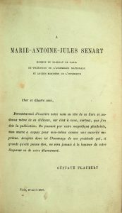 la dédicace à Marie-Antoine Jules Senart avec la faute à Senart, Les tirages suivants rétabliront l’orthographe Senard.