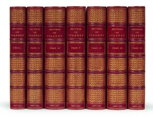 7 volumes In-12. Plein maroquin rouge, dos à nerfs doré