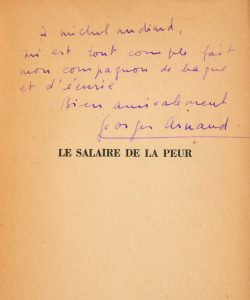 Envoi autographe de l’auteur : à Michel Audiard qui est tout compte fait mon compagnon de bagne et d’écurie. Bien amicalement, Georges Arnaud.