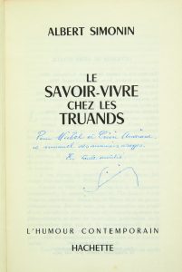 SIMONIN (Albert). Le Savoir-vivre chez les truands. Paris, Hachette, Collection l’humour contemporain, 1967.