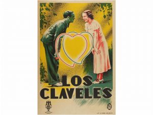 1935. CARRILERO, ABAD: LOS CLAVELES. Programa pasquín P.C.E. Litográfico. Tamaño 22 x 32 cm. Con María Arias, Amparo Mary Bosh y Mario Gabarrón. Ilustración de Carrilero Abad.