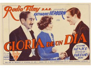 1933. GLORIA DE UN DIA. Tarjeta Radio, con Katharine Hepburn y Adolphe Menjou. Muy buen estado.
