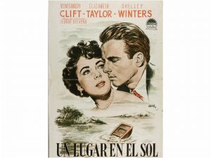 1951. JANO: UN LUGAR EN EL SOL. Programa pasquín Paramount. Tamaño 23 x 33 cm. Con Montgomery Clift y Elizabeth Taylor. Ilustración de Jano. Muy raro. Ligera señal de doblez.