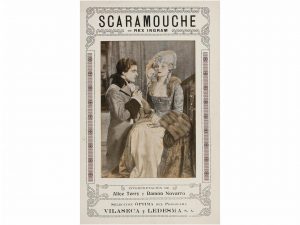 1923. SCARAMOUCHE. Programa de ocho páginas de Vilaseca y Ledesma. Rarísimo, con Ramón Novarro y Alice Terry. Muy buen estado general, con lomo algo abierto.