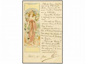 1900 ca. TARJETAS POSTALES. MUCHA, A. SAISONS. PRINTEMPS. Ligeras marcas de album.