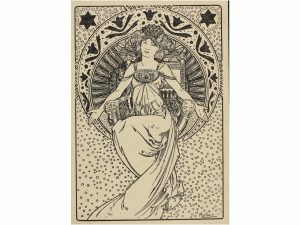 1900 ca. MUCHA, ALPHONSE: SOCIEDAD EN BENEFICIO DE AUSTRIA-HUNGRÍA. Postal ilustrada por Alphonse Mucha. Buen estado.