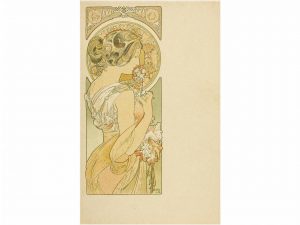 1900 ca. MUCHA, ALPHONSE: PRIMROSE. Postal ilustrada por Alphonse Mucha. Buen estado.