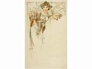1900 ca. MUCHA, ALPHONSE: DESING FOR MENU. Postal ilustrada por Alphonse Mucha. Buen estado.