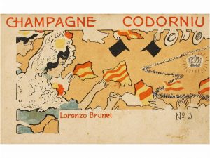 1900 ca. BRUNET, L.: CHAMPAGNE CODORNIU. Rarísima serie de 10 tarjetas portales. Completa. Todas sin circular. Lijeras manchas del tiempo. Ilustradas por Lorenzo Brunet.