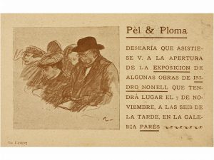 1901. NONELL: PEL & PLOMA. Postal invitación a la Exposición de obras de Isidro Nonell de la Galería Parés. Sin circular. Muy buen estado. Realizada por Nonell.