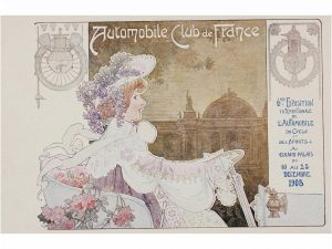 1903. PRIVAT LIVERONT: AUTOMÓBILE CLUB DE FRANCE. EXPOSICIÓN DE 1903. Dos postales ilustradas por Privat-Livemont. Perfecto estado.