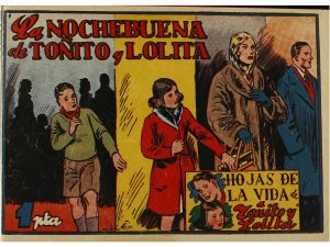 1951. JUEZ, JAIME: HOJAS DE LA VIDA DE TOÑITO Y LOLITA. Colección completa, 14 ejemplares. Editada por Toray en 1951. Uno de los primeros melodramas del tebeo autóctono. Encuadernada con estampación en el lomo.