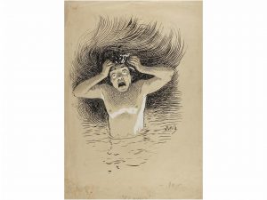 1910 ca. A. UTRILLO: EL ÁVARO. Dibujo original de Antoni Utrillo. Probablemnete se trate de una ilustración para la edición de la novela de Moliere El Ávaro. 21,5 x 31,5 cm.