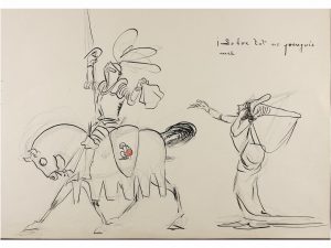 1926. XAUDARÓ: SIN TITULO. Dibujo original de Joaquín Xaudaró. Chiste medieval en catalán. 35 x 26 cm.