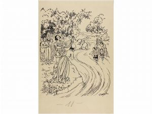 1930 ca. J. VIÑALS: J. VINYALS. 5 DIBUJOS ORIGINALES. Barcelona. Editorial Baguna. Varios tamaños. Dibujos pluma. Pertenecen a diferentes cuentos y relatos.