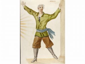 1930 ca. D´IVORI: PERSONAJE. Ilustración original años 30. Probablemente para el vestuario de una obra de teatro. Obra de Joan Vila i Pujol, D´ivori.