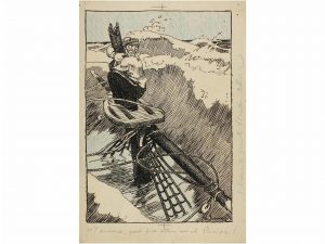 1935 ca. JUNCEDA: JUNCEDA. DIBUJO ORIGINAL. Barcelona. Editorial Baguña. 13,5 x 20 cm. Dibujo pluma relato (Tormenta en el mar)).