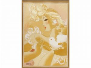 1935 ca. PEDRAZA BLANCO: MUJER CON PALOMA. Obra original de Juan José Pedraza Blanco, pintor y dibujante madrileño comprometido con la causa republicana en tiempos de la guerra civil; tiempo en el que destacó en taréas cartelísticas. 20 x 29 cm.