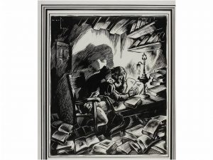 1940 ca. MARTI BAS, JOAQUIN: ´SIN TÏTULO. Portada. Creación original en blanco y negro para libro o revista. Sin datos sobre la publicación a la que pertenece. Tamaño soporte 38 x 24 cm.