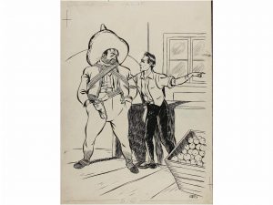 1945 ca. JOSEP ESCOBAR: LA PAZ EN EL VALLE. Dibujo original para la novela ´La paz en el valle´. Uno de los pocos dibujos realistas del creador de Zipi y Zape.