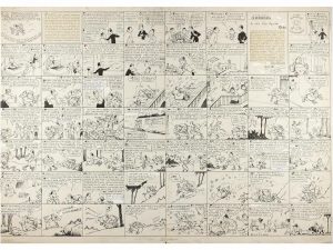 1950 ca. MARINO BENEJAM: TBO. Espectacular doble página original del craedor de la Familia Ulises. Publicada en la revista TBO bajo el titulo ´La primera excursión de Paco Zapallo´. 50 x 32,5 cm.