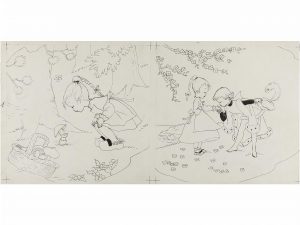 1955 ca. (COMIC). FERRANDIZ: FERRANDIZ. 12 DIBUJOS ORIGINALES INTERIORES DE LA COLECCIÓN ENANITO. Barcelona. Editorial Baguña. 16,5 x 34 cm. Dibujos pluma. Conjunto de 12 dibujos originales (dos por hoja) de la Colección Enanito. Completo a...