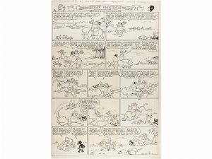 1955. MARINO BENEJAM: MORCILLÓN Y BABALÍ. Contraportada. Dibujo original. Corresponde al cuaderno Nº 519 del Semanario TBO. Tamaño soporte 42 x 30 cm. Coloreado al dorso.