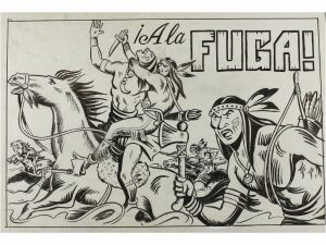 1955 ca. GARCÍA IRANZO: ¡A LA FUGA!. Portada original. Probablemente de Agencia, con un estilo y contenido que recuerda a la famosa creación Rayo Kit. Atribuida a García Iranzo.
