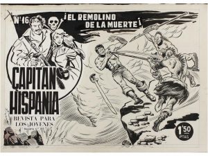 1959. ALACREU, G.: GONZALEZ ALACREU: EL CAPITÁN HISPANIA. Cuaderno Nº 16, completo (portada con prueba de color al dorso + diez páginas interiores). 35 x 25 cm. Editorial Creo.