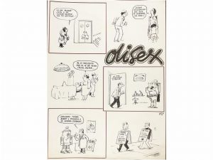 1985 ca. OLI: CONJUNTO DE 20 HOJAS CON ORIGINALES EROTICO-COMICOS, MUCHOS DE LA SECCION OLISEX PUBLICADOS EN LA REVISTA PAPUS. Tinta sobre cartoné de aprox. 45x34 cm. En la mayoría varias viñetas.