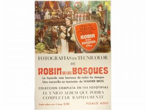 1950 ca. CLIPER: ROBÍN DE LOS BOSQUES. Cartel 45 x 65 cm. (17,5 x 25 in.), con el anuncio de puesta en venta de la colección de cromos de la película. Ediciones Cliper. Muy raro. Offset A.