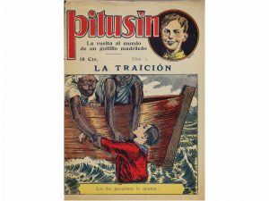 1925 ca. PITUSÍN; LA VUELTA AL MUNDO DE UN GOLFILLO MADRILEÑO. Folletín. Colección de 17 ejemplares, incompleta. Faltan Nºs 1 y 16. También la portada del Nº 2 y el dorso de último cuaderno. Editorial Garrofe. Estado irregular. Rara.