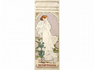 1900. VALERA, E.: THEATRE DE LA RENAISSANCE. Creación original 20 x 53 cm. (8 x 21,5 in.) Boceto Inspirado en el famoso cartel de Alphonse Mucha. Original A. Creación de Eulogio Varela, uno de los grandes impulsores del Modernismo en España.