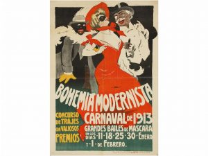 1913. BOHEMIA MODERNISTA. CARNAVAL DE 1913. Cartel 80 x 120 cm. (31 x 47 in.) Imprenta Barcelona. Litografia A.