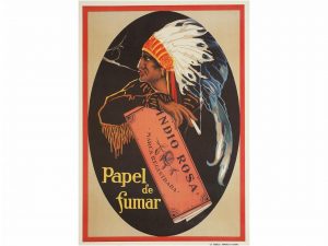 1930 ca. INDIO ROSA. Cartel 70 x 100 cm. (27 x 39 in.) Lit. Fábrega (Barcelona) Papel de fumar. Litografia A.