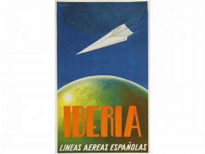 1940 ca. Gamonedo. IBERIA, LÍNEAS AÉREAS ESPAÑOLAS. Cartel 62 x 100 cm (24,5 x 39 in.) Litografia B. Restaurado y entelado. Realizado por Gamonedo.