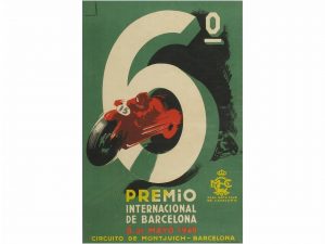 1949. (MOTOCICLETAS). MOREL: 6º PREMIO INTERNACIONAL DE BARCELONA. 65x44,5cm. (25,5x17,5in.). Litografía. A-. Entelado.
