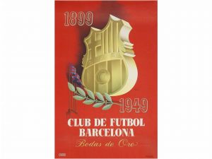 1949. (DEPORTES-BARÇA). PADILLA, REY: CLUB DE FÚTBOL BARCELONA BODAS DE ORO. Litografía. 60x40cm. (23,5x15,7in.). A-.