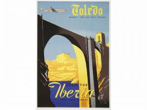 1950 ca. VUELE POR IBERIA. TOLEDO. Cartel 41 x 60 cm. (16, 5 x 23,5 in.) Litografia A. Rasgo Publicidad.
