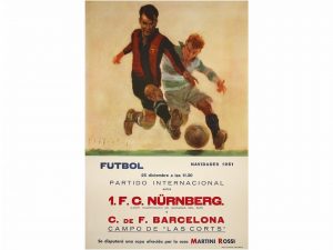 1951. SEGRELLES: C. F. BARCELONA - F. C. NUREMBERG. Cartel 33 x 49,5 cm. (13,2 x 19,5 in.) Litografia A. Realizado por Segrelles.