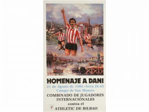 1986. Garay. HOMENAJE A DANI. Cartel 52 x 88 cm. (20 x 35 in.) Homenaje al jugador del Athletic de Bilbao Dani. Ofsset A-. Realizado por Garay.