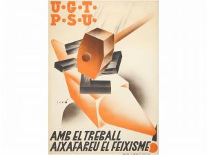 1937 ca. (GUERRA CIVIL Y REPUBLICA). AMB EL TREBALL AIXAFAREU EL FEIXISME. Barcelona: Gràfiques Unides. 99x69,7 cm. (39x27,5 in.). A -.