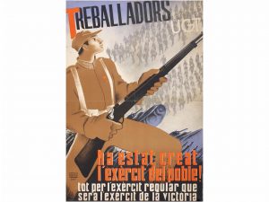 1938. (GUERRA CIVIL Y REPUBLICA). TREBALLADORS HA ESTAT CREAT L´EXERCIT DEL POBLE!. Barcelona: I.G Seix i Barral; Ed. Comissió d´Agitació i Propaganda UGT. B +. Pequeñas rasgaduras en el margen derecho sin pérdida.