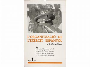 1940 ca. (GUERRA CIVIL). L´ORGANITZACIÓ DE L´EXÈRCIT ESPANYOL. Cartel 31 x 48 cm. (12,3 x 19 in.) Promoción de un libro sobre la corrupción del ejército español en tiempos de la Guerra Civil. Ofsset B.