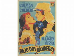 1936. ESTUDIO FOX: BAJO DOS BANDERAS. Cartel Fox del estreno. 70 x 100 cm. (27 x 39 in.) Realizado por Estudio Fox. Entelado B. Pequeñas restauraciones en bordes.