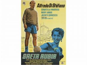 LA SAETA RUBIA. Cartel Floralba 70 x 100 cm. (27 x 39 in.) Fútbol, Alfredo Di Stéfano. Entelado, mínimas restauraciones. Litografia B. Realizado por Mac.
