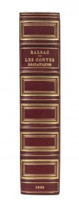 Parfaite reliure in-8 plein maroquin rouge, plats à triple filets d’encadrement or, dos 5 nerfs et caissons dorés, trois tranches dorées, couvertures con