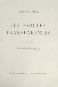 (BRAQUE Georges) PAULHAN Jean : Les paroles transparentes. Bibliophiles de l’Union Française. Paris 1955.