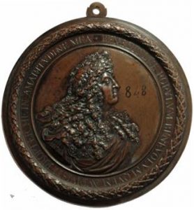 LOUIS XIV (14 mai 1643 – 1er septembre 1715). Médaillon uniface en fonte, buste de Louis XIV par Francesco Bertinetti dit Bertinet.